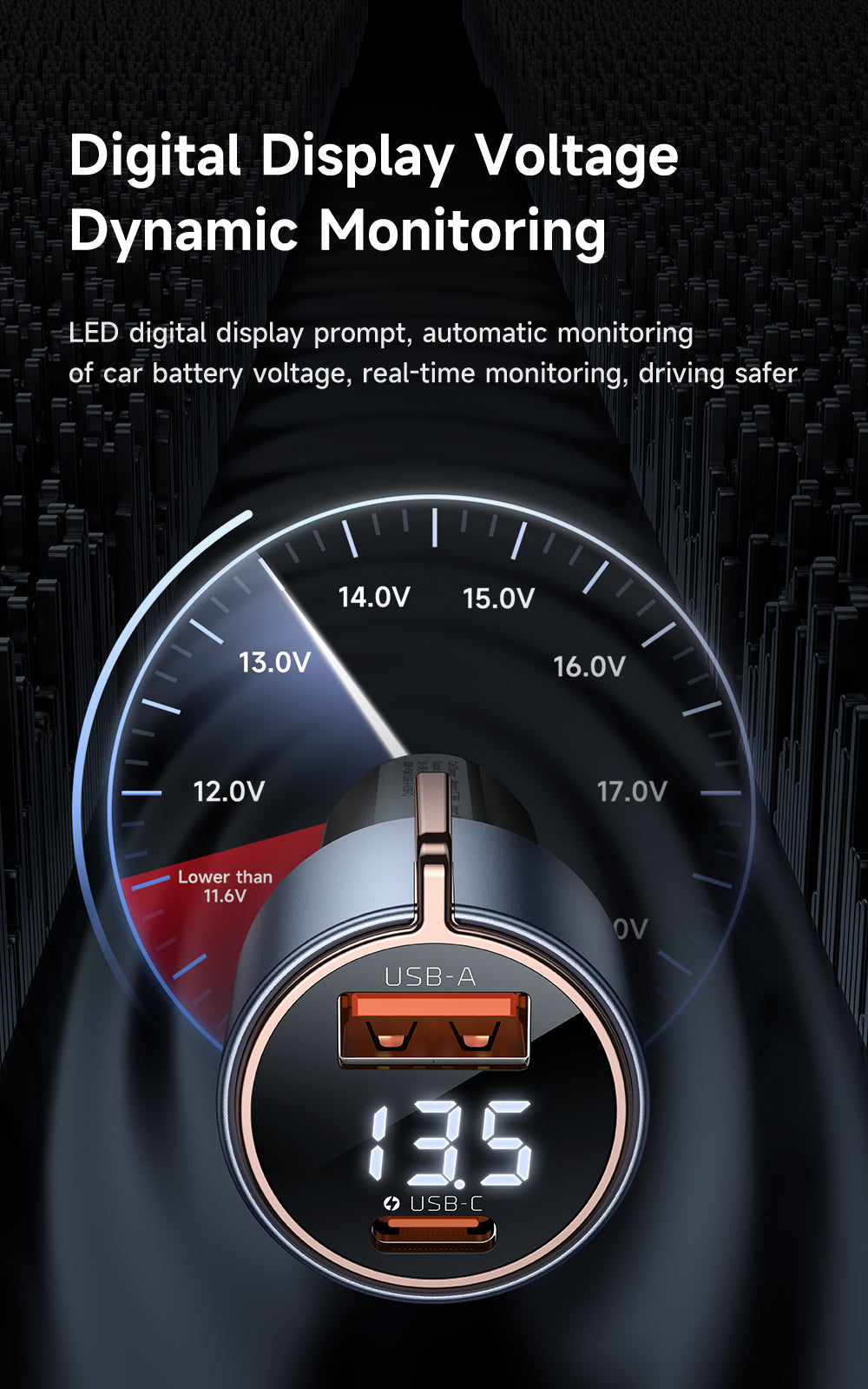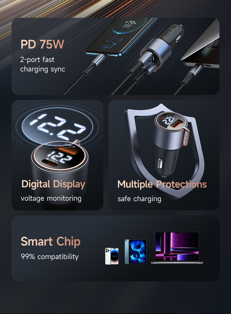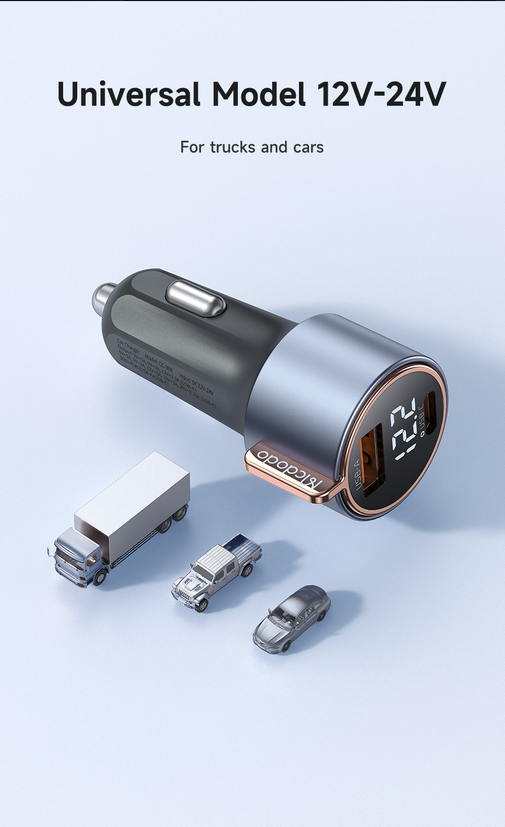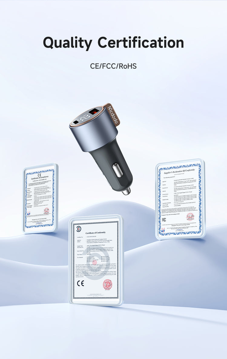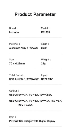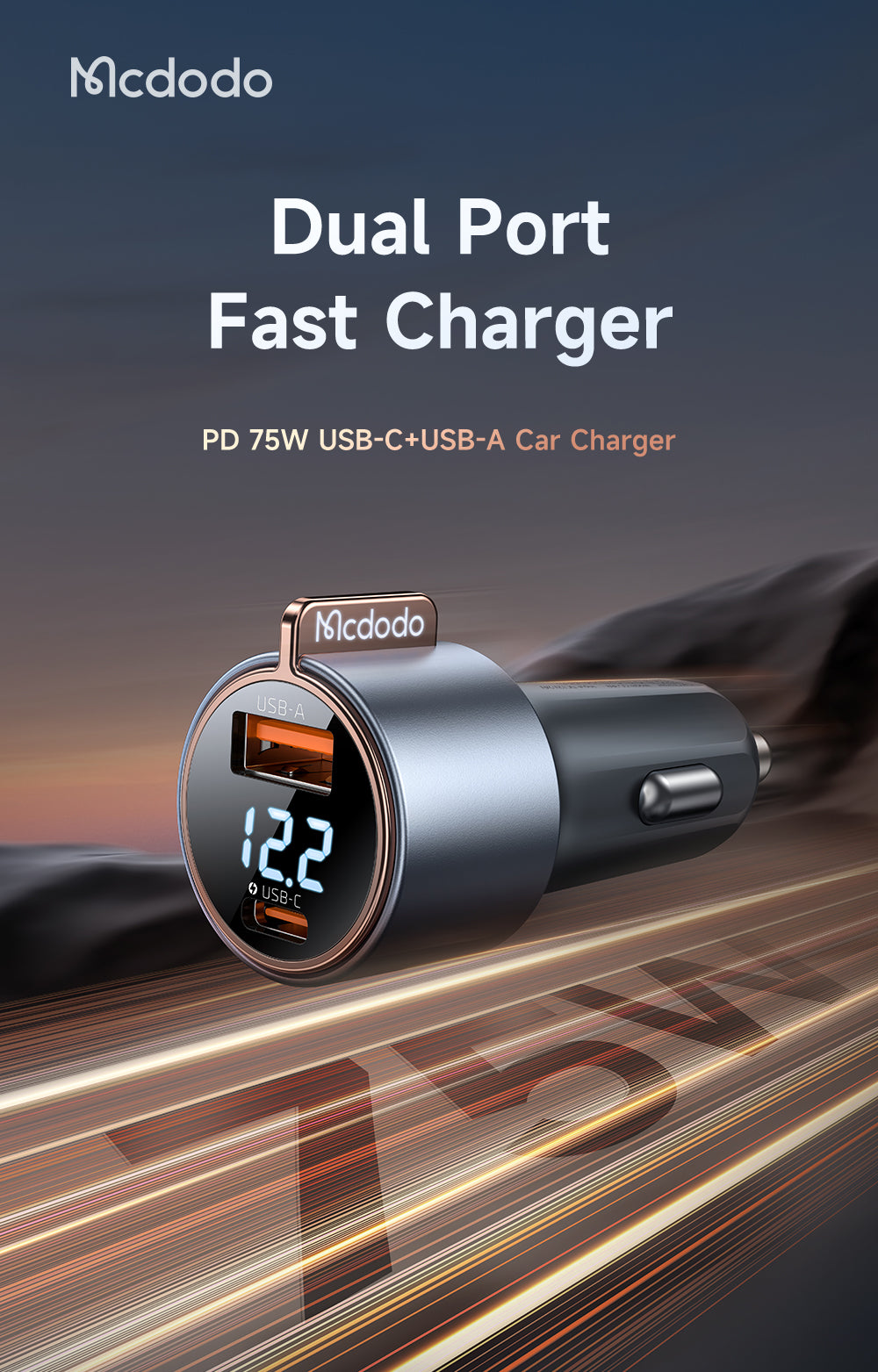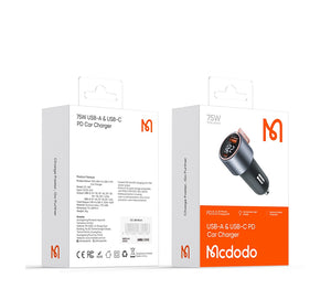 Mcdodo CC-369 | 75W PD Car Charger With Digital Display | Dual Ports (Type-C & USB)
