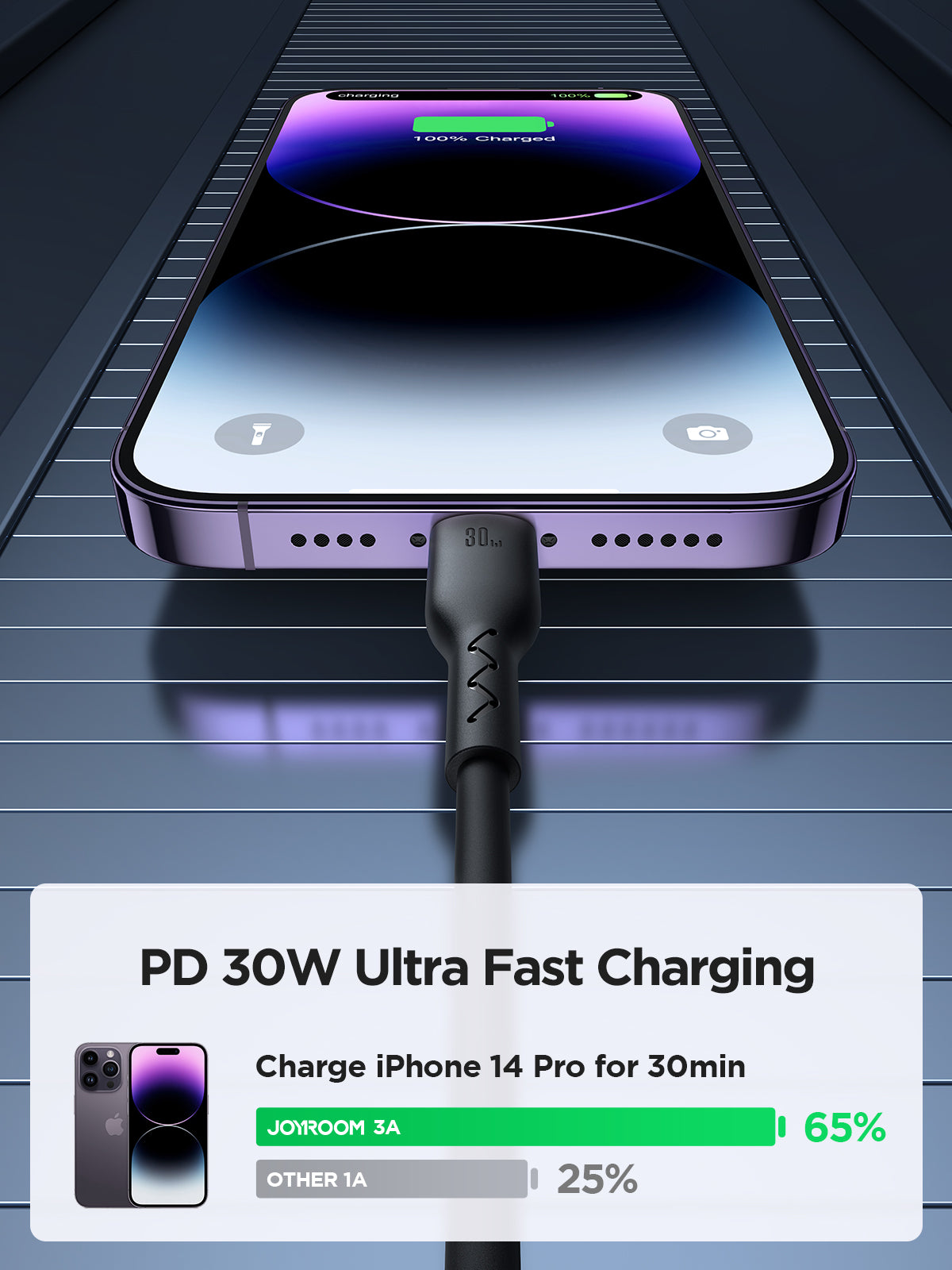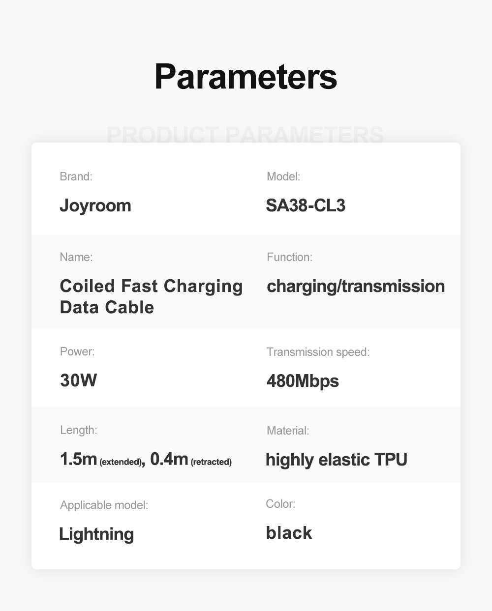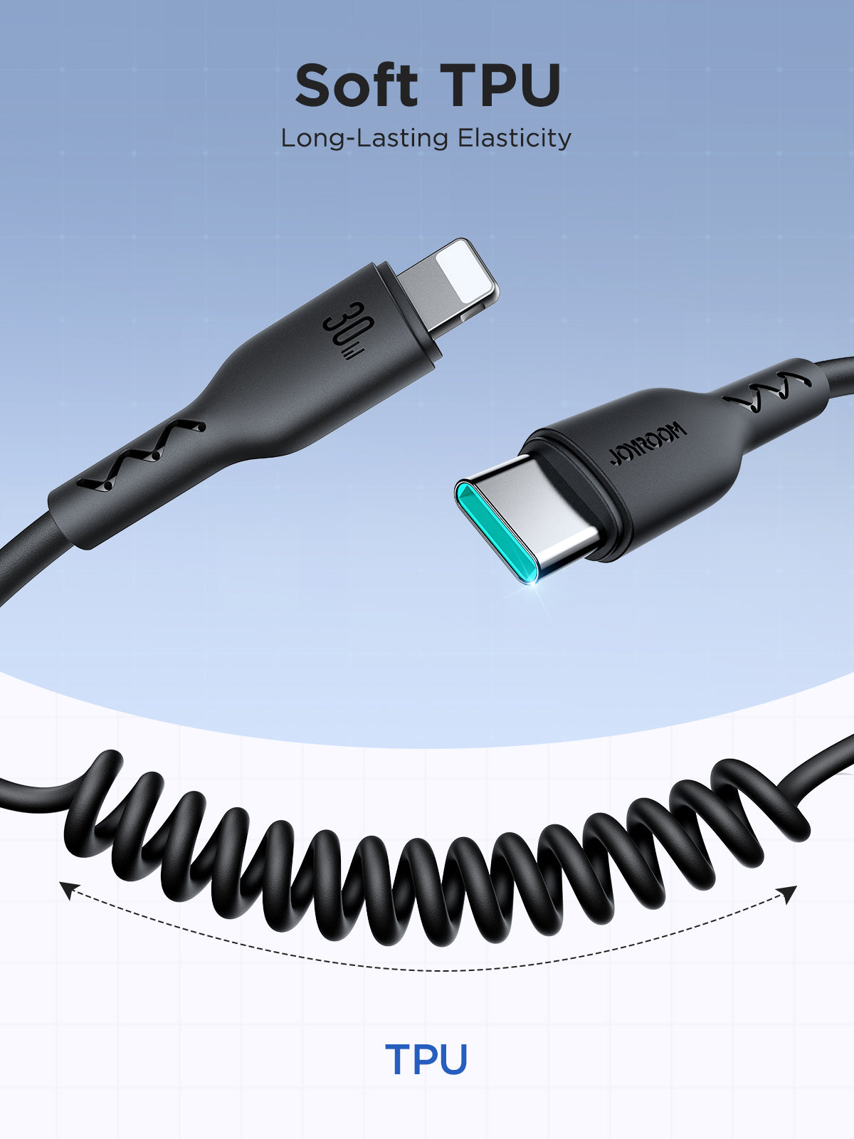 Joyroom SA38-CL3 | Type-C to Lightning Coiled Mobile Cable | 30W Fast Charge PD