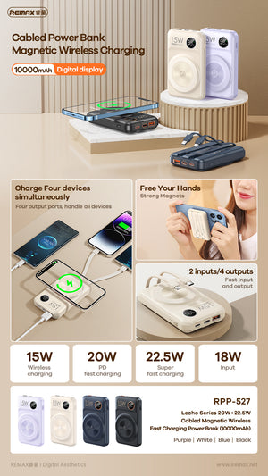 Remax RPP-527 | Powerbank 10000 mAh 15W + 22.5W | Magnetic Wireless