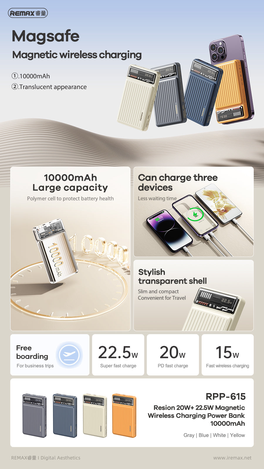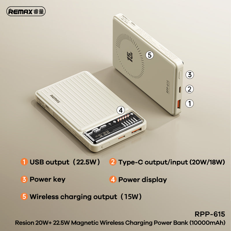 Remax RPP-615 | Powerbank 10000 mAh 20W + 22.5W | Magnetic Wireless